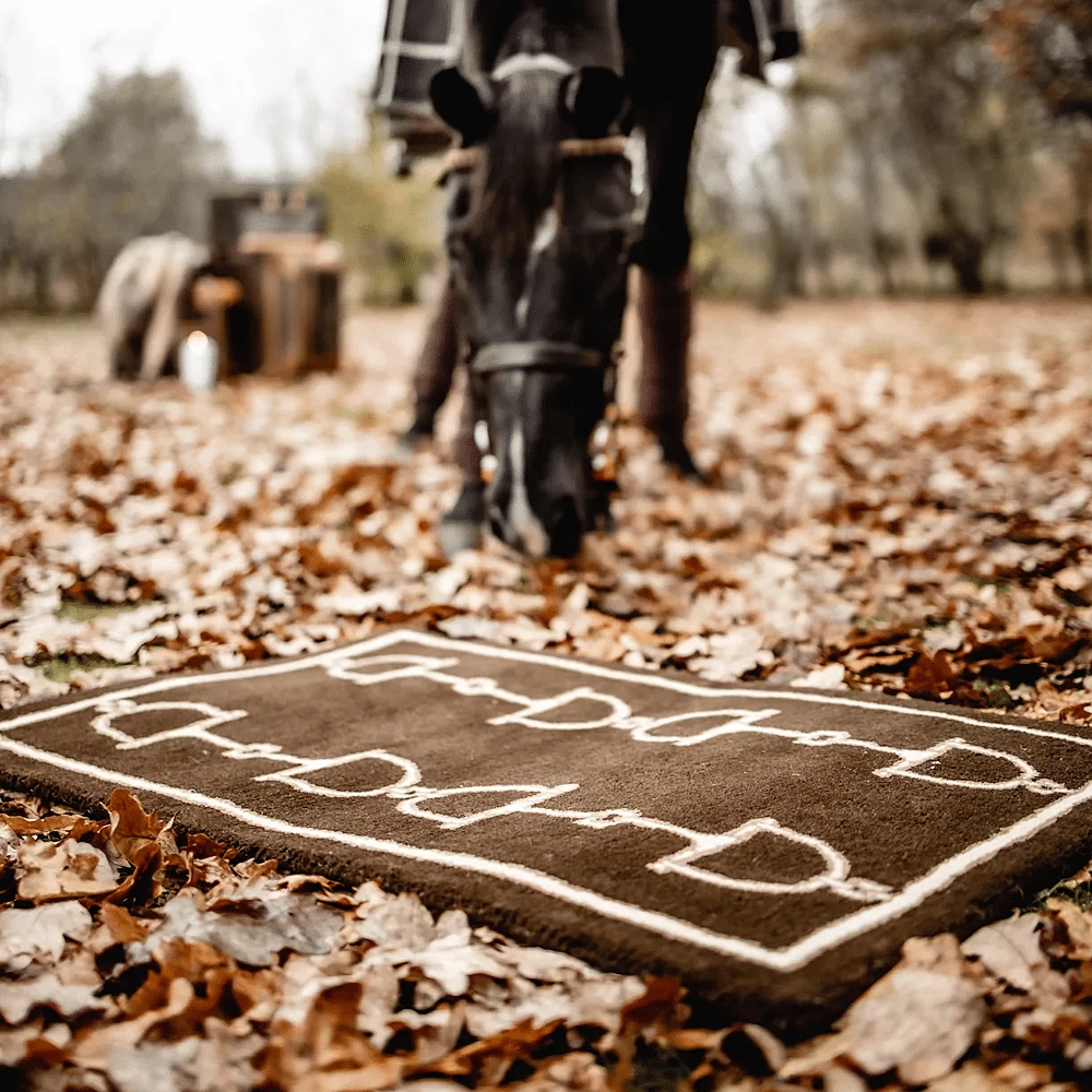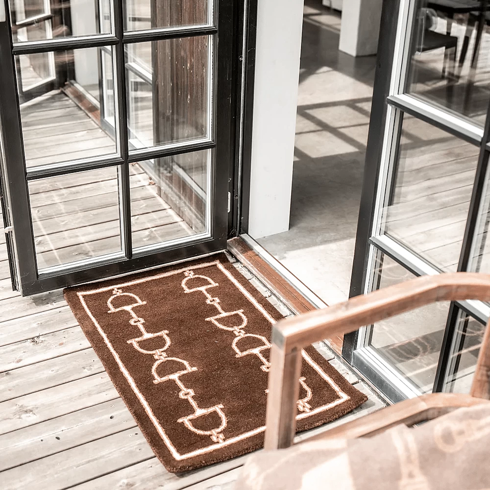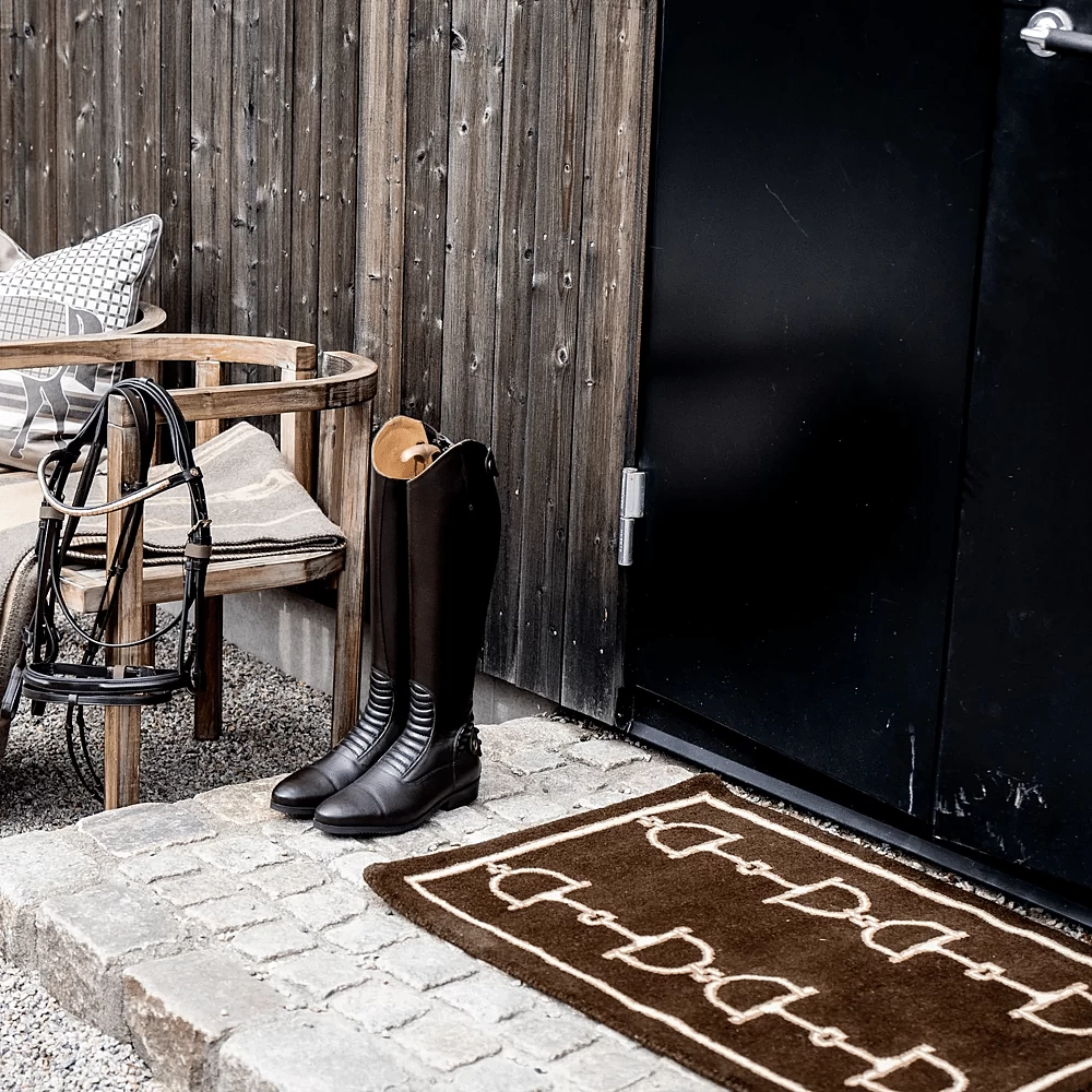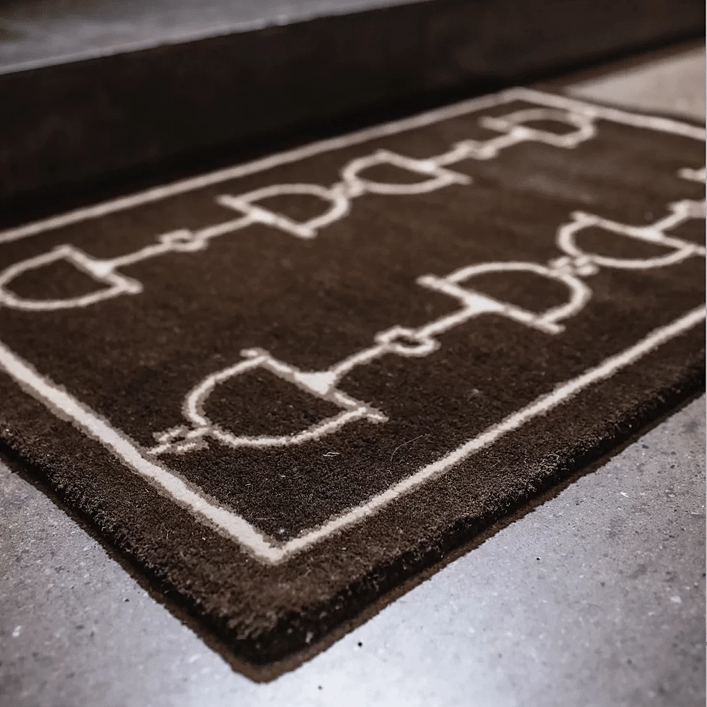Vloermat in 100% wol met de klassieke bite, kan gebruikt worden als decoratie.  Deurmat, ook zeer populair om te gebruiken in zadelkamers & paardenwagens.