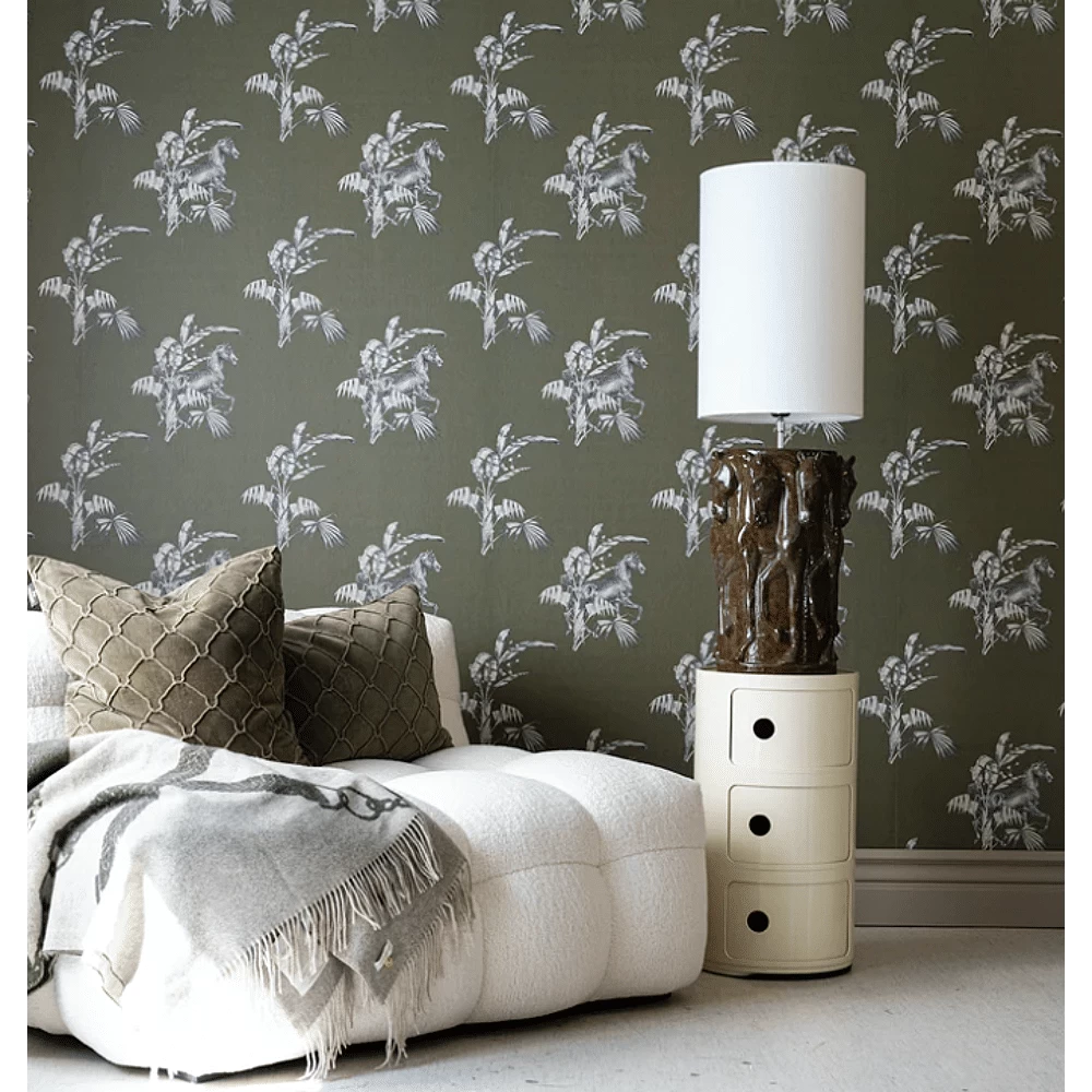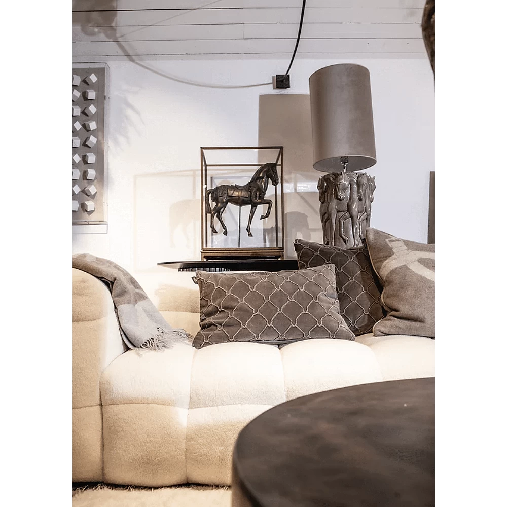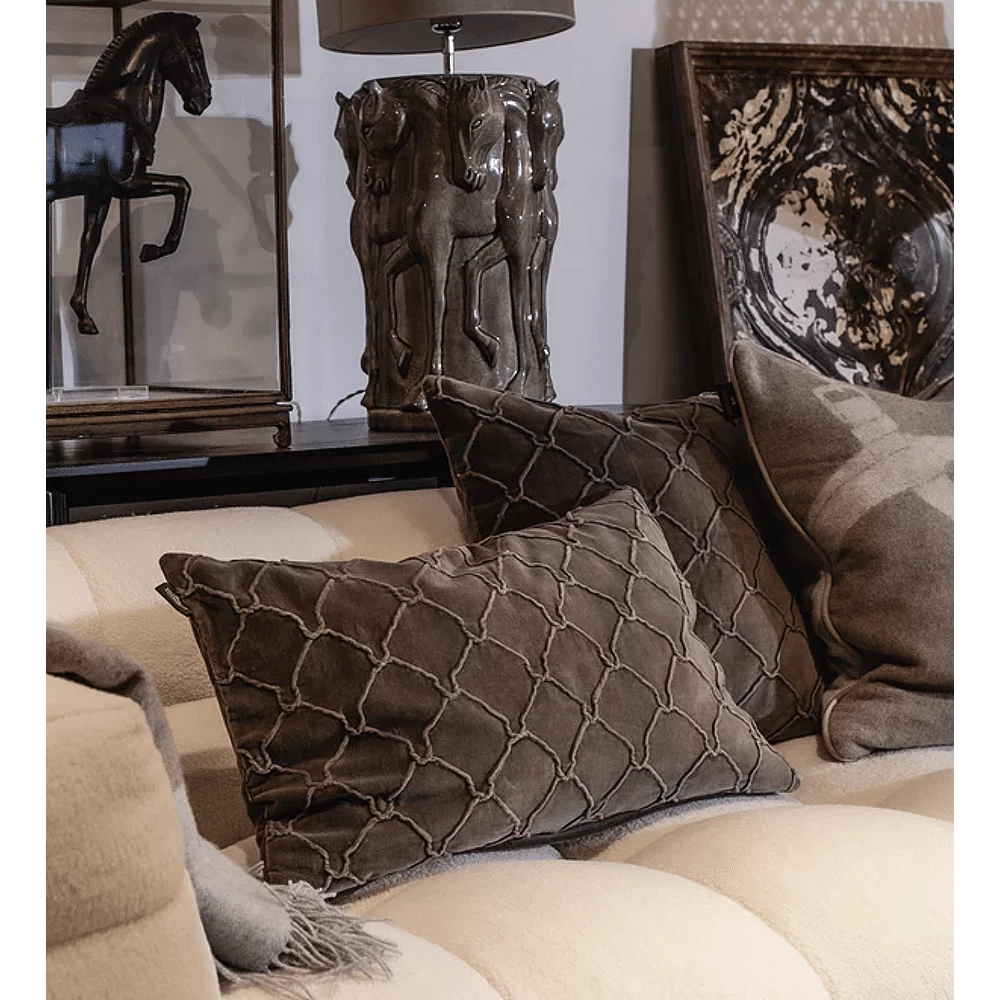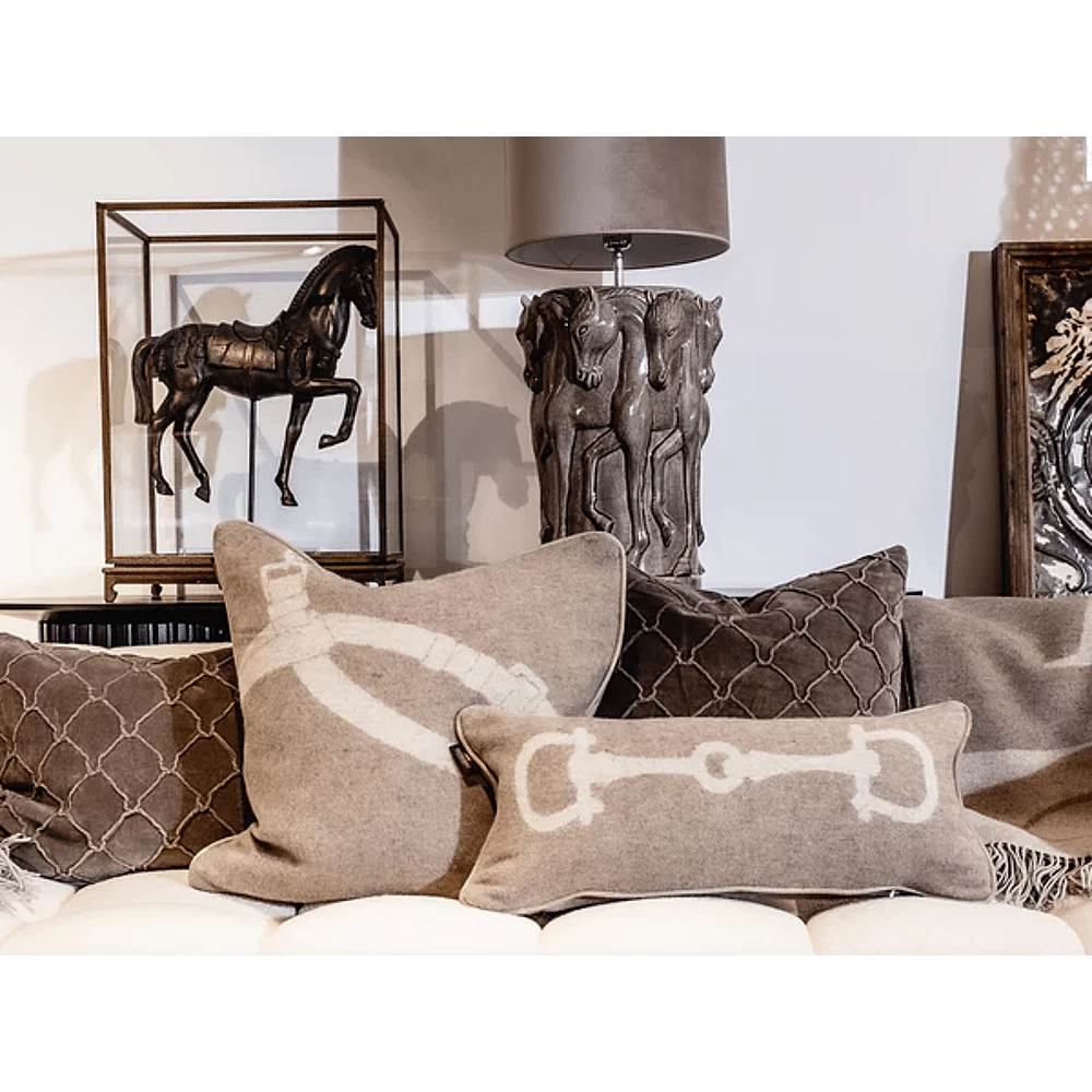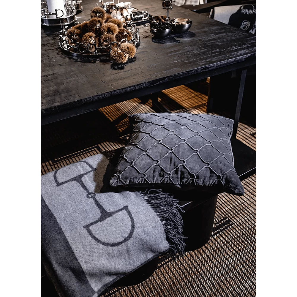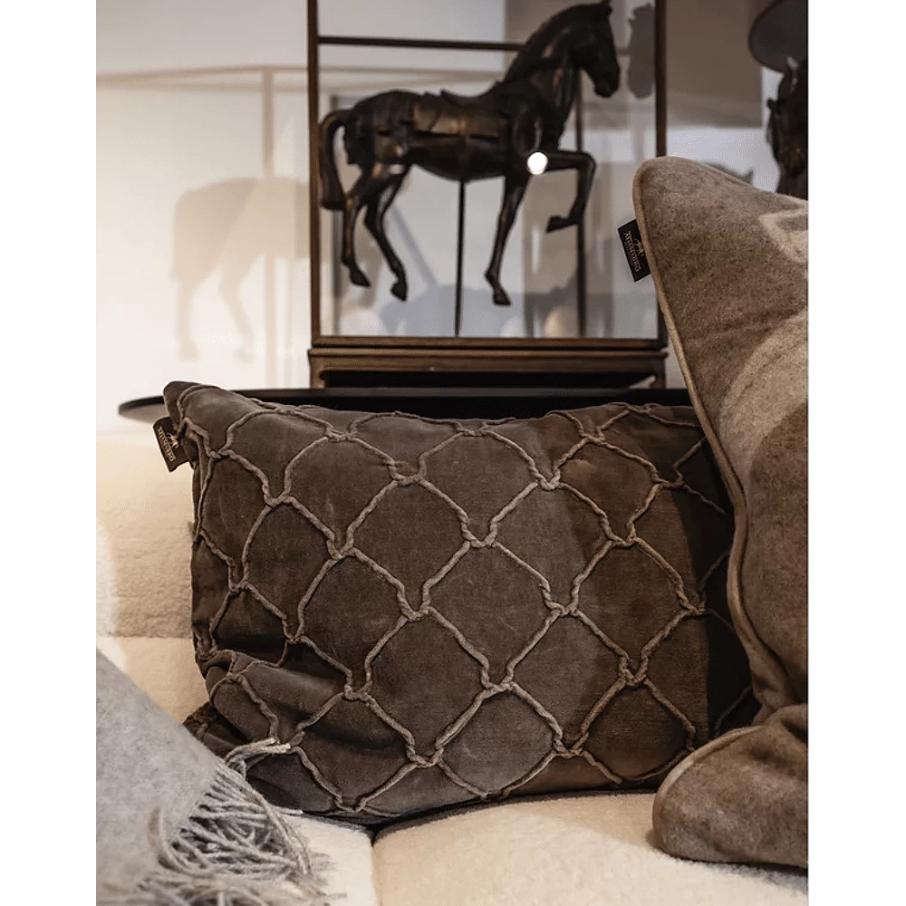 Prachtig kussen met handgeborduurd hoefijzerpatroon op de voorkant en effen kleur achterkant.