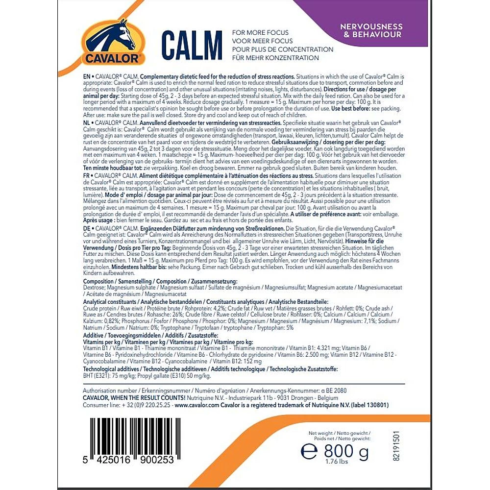 Cavalor Calm vermindert stress bij kijkerige paarden die overgevoelig en timide reageren op veranderende situaties of ongewone omstandigheden (lawaai, kleuren, lichten, tumult, vreemde omgevingen, mensen en dieren, …). Paarden die goed presteren op training kunnen toch minder attent zijn op wedstrijd of in hun schulp kruipen om wille van stress veroorzaakt door transport, andere paarden of omgevingsdrukte en hierdoor minder presteren. Cavalor Calm is ontwikkeld voor de jonge, introverte en kijkerige paarden of schreeuwerige hengsten. Het helpt de rust en de concentratie van het paard te controleren. Stress heeft niet alleen invloed op de prestaties, het heeft ook effect op het algemene welzijn van het paard en kan ervoor zorgen dat het paard moeilijk in conditie te houden is.