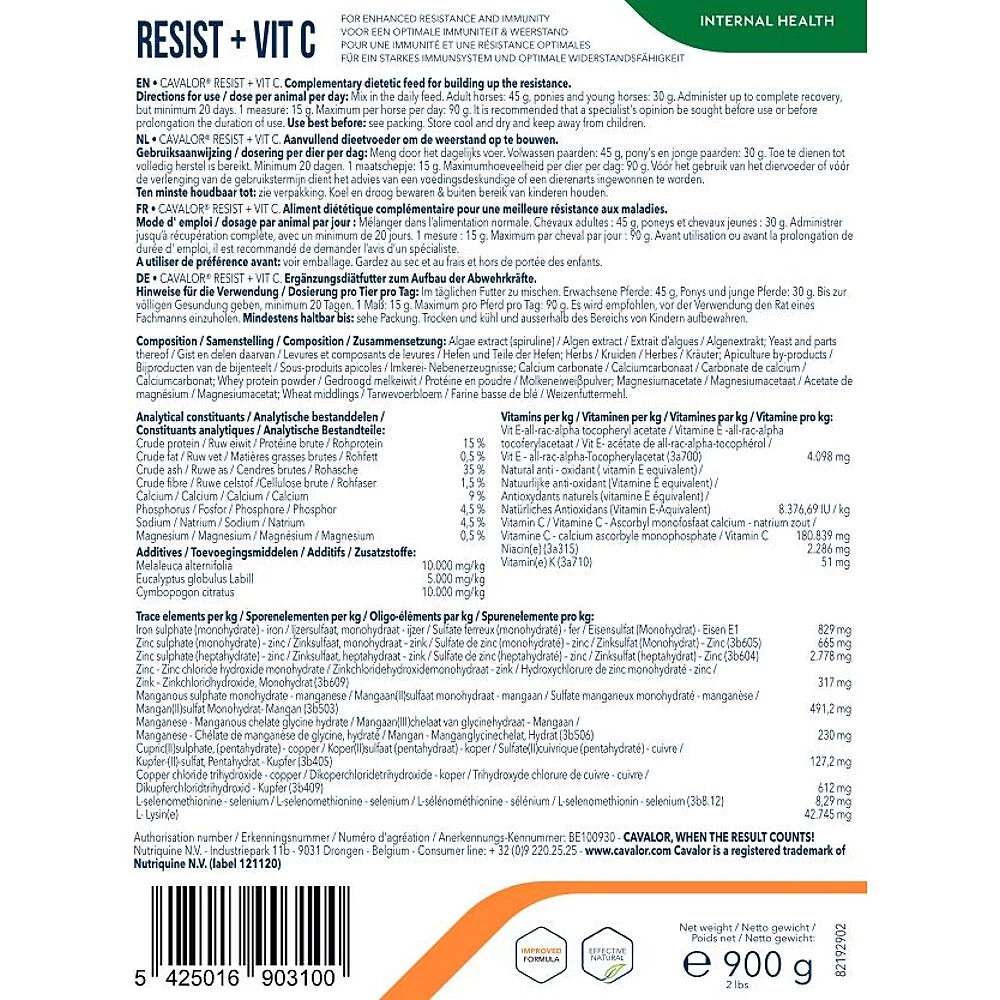 In emmer (poedervorm), Cavalor® Resist + Vit C 900g, hoeveelheid voor 20 dagen.