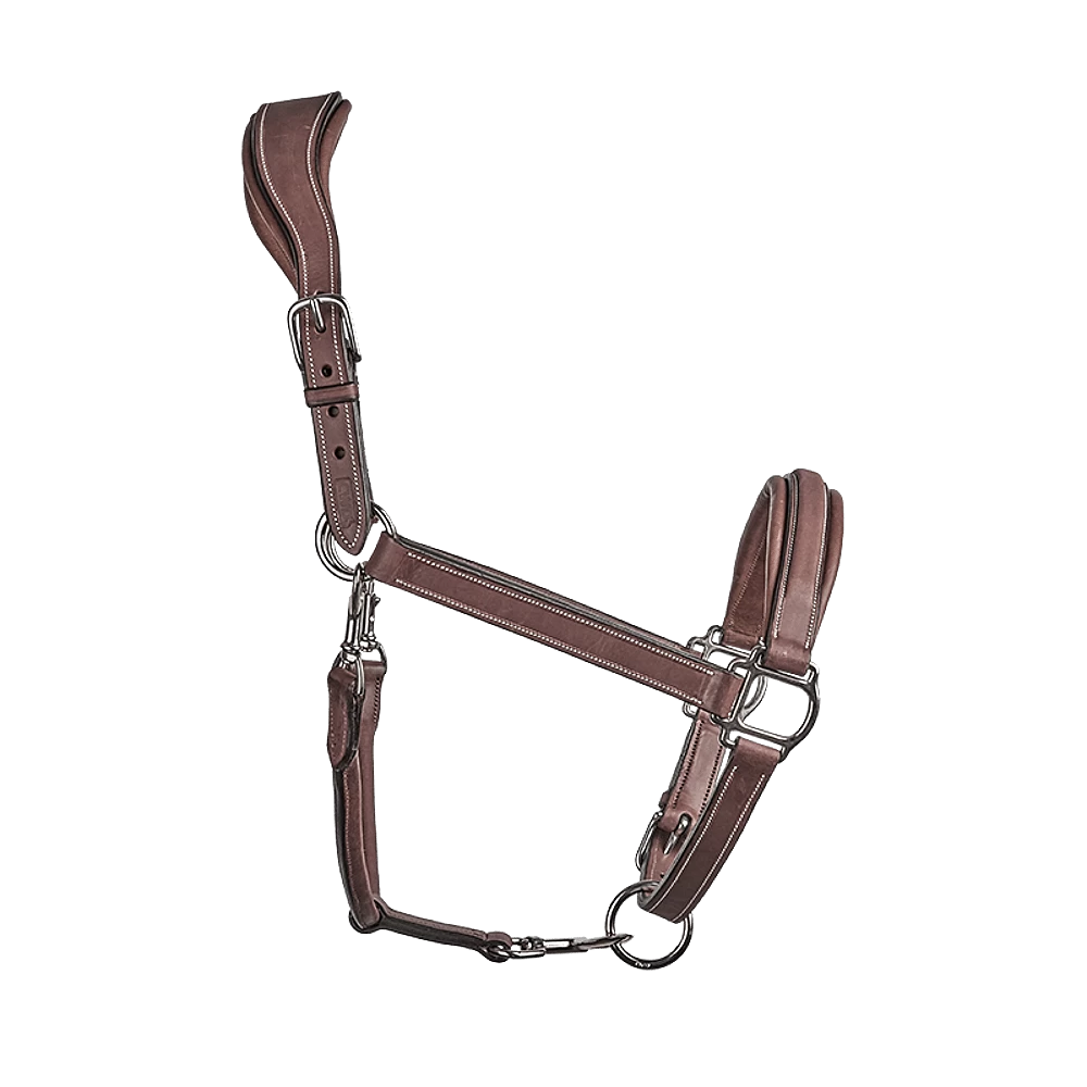 Het anatomisch gevormde kopstuk met een dun schuimlaagje van het stabiele halster zorgt voor een hoog draagcomfort voor het paard. De keelriem is afneembaar waardoor het halster snel kan worden gebruikt.