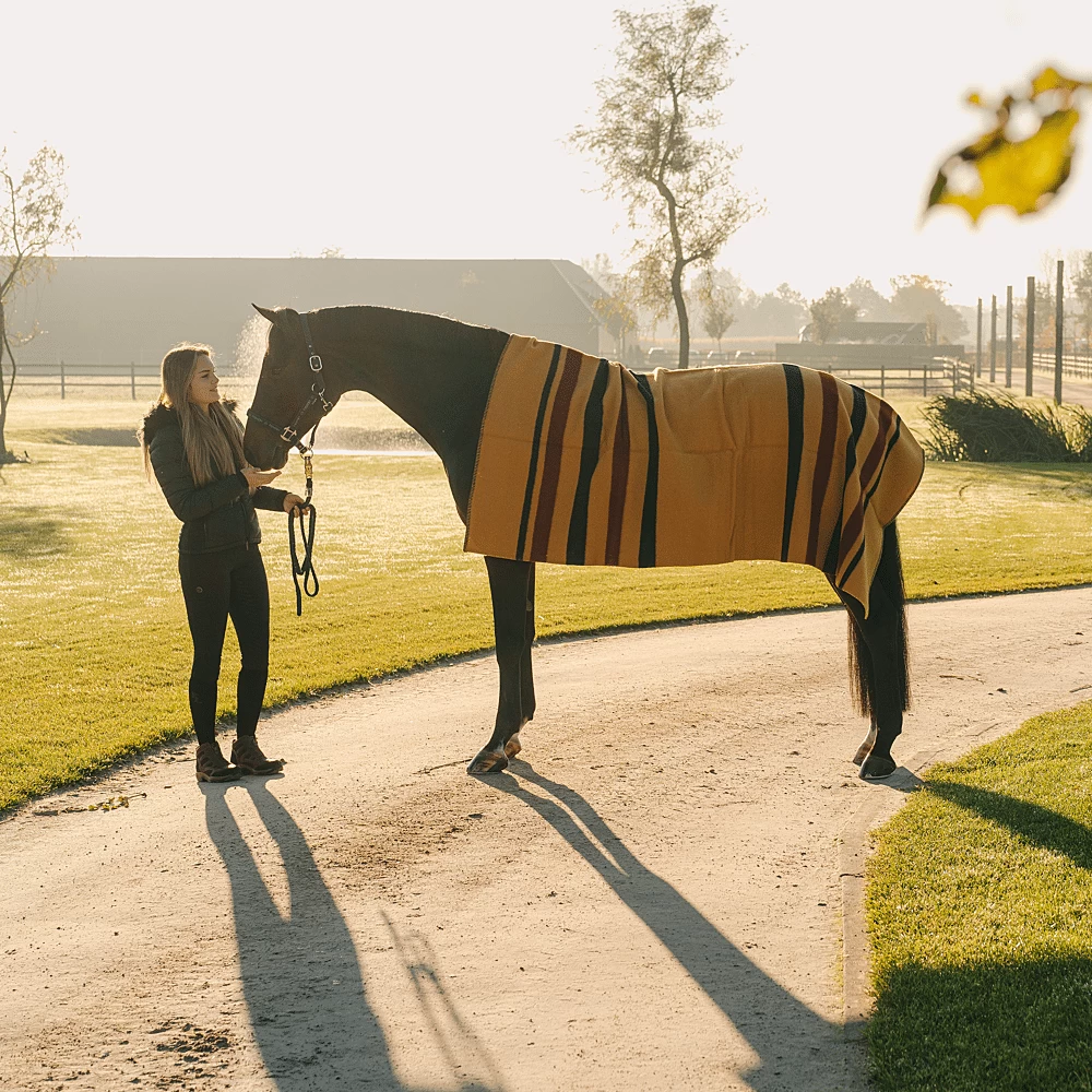 Deze wollen deken van ons huismerk in traditionele kleuren is een geweldig deken om extra warmte toe te voegen in de winter. De deken wordt vaak gebruikt tussen 2 andere dekens in, hierdoor blijft deze ook optimaal op zijn plek liggen. Natuurlijk kun je de deken ook gebruiken om zelf warm te blijven of om te gebruiken als picknickkleed bij wedstrijden in de zomer.