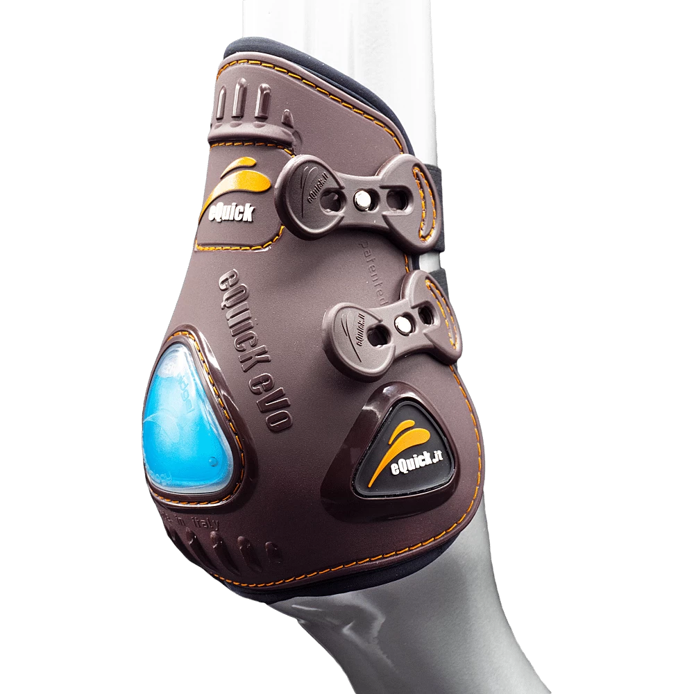 Exclusieve gepatenteerde eFluidgel technologie: De speciale bubbel in de schaal vermindert de impact op het been van het paard door lucht- en gelcompressie en de mogelijkheid om schokken te absorberen.