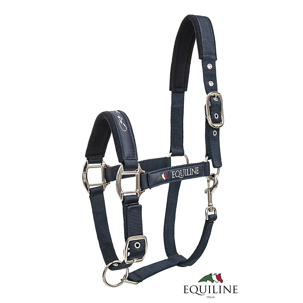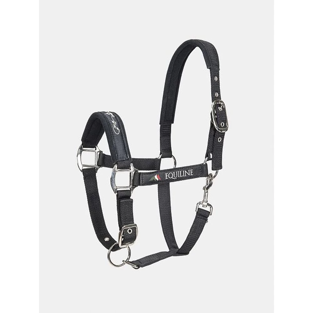 Mooi afgewerkt halster van het merk Equiline. Verstelbaar bij zowel het hoofd als de neus. De zachte neopreen padding onder het kopstuk en de neusriem zorgt voor een optimaal draagcomfort bij je paard of pony. Het halster is afgewerkt met een sierstiksel op de neus en het Equiline logo aan de zijkant.