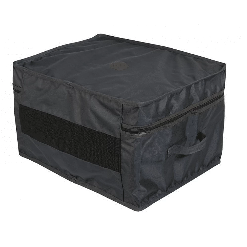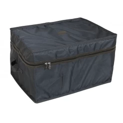 Van waterdicht, 1680D PVC gecoat polyester. Hiermee kunt u een winterdeken of meerdere zomerdekens buiten het seizoen uit het stof opbergen, of uw zadeldekjes, trainingsdekens, beenbeschermers, enz. Dubbeldik gaas aan de achterkant om ventilatie te garanderen. Voorzien van een 2-weg ritssluiting aan de zijkant en 2 draaggrepen. 100% katoenen voering. Ook handig voor thuis om dekens, spreien, kussens en lakens in op te bergen.