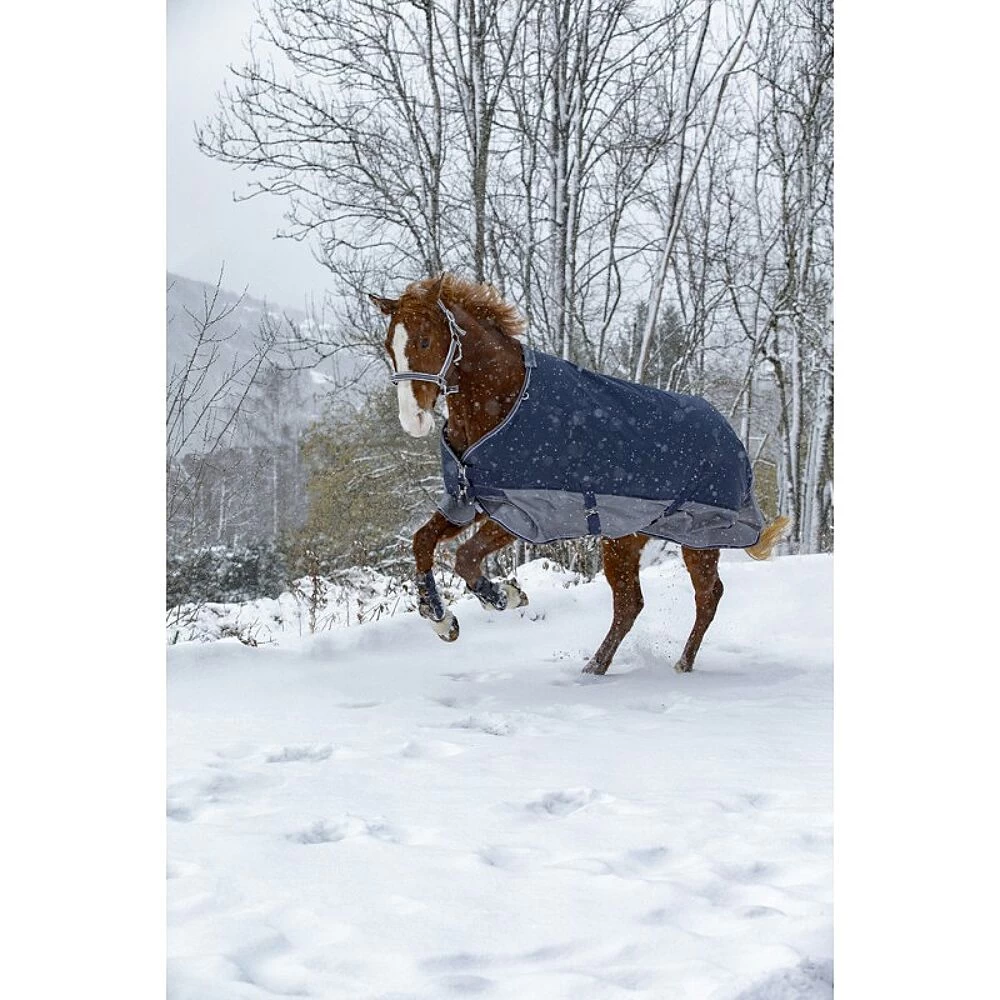 Deze outdoordeken van is een waterdichte en ademende buitendeken van 600 deniers ripstop polyester met getapete naden. Het deken heeft een 150 grams vulling met nylon voering en is voorzien van extra grote staartflap. Er is een dubbele borstsluiting, schoftbontje, kruissingels en een verstelbaar staartkoord.