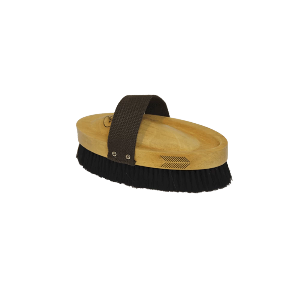 Deze gelakte Grooming Deluxe ovale borstel Is gevuld met korte harde nylonharen om de olie van de vacht te helpen verdelen en om zo een glanzende en stralende vacht te creëren. De haren in het midden zijn gladder dit zorgt voor een betere werking. Het is ideaal om te gebruiken in de winter op paarden met een dikkere vacht. Deze borstel heeft een katoenen band om je hand vast te houden. Maak je borstel schoon door het te dempen in warm water met zeep en zorg ervoor dat hij lang meegaat. Je paard wordt de ster van de stal dankzij deze borstel.