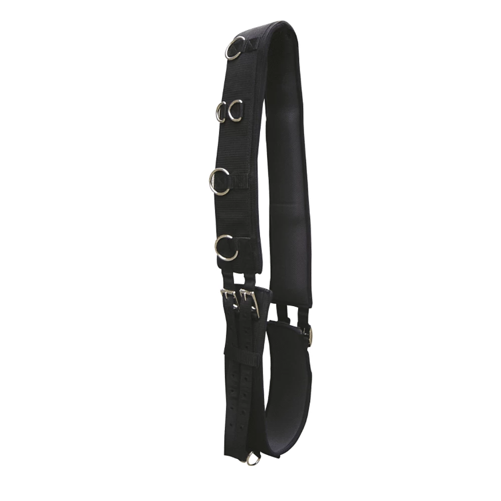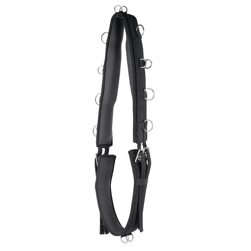 Luxe Harry’s Horse longeersingel met neopreen voering. Deze longeersingel is voorzien van 12 ringen waarvan 2 ringen aan de onderkant. Aan beide kanten verstelbaar door middel van rolgespen.