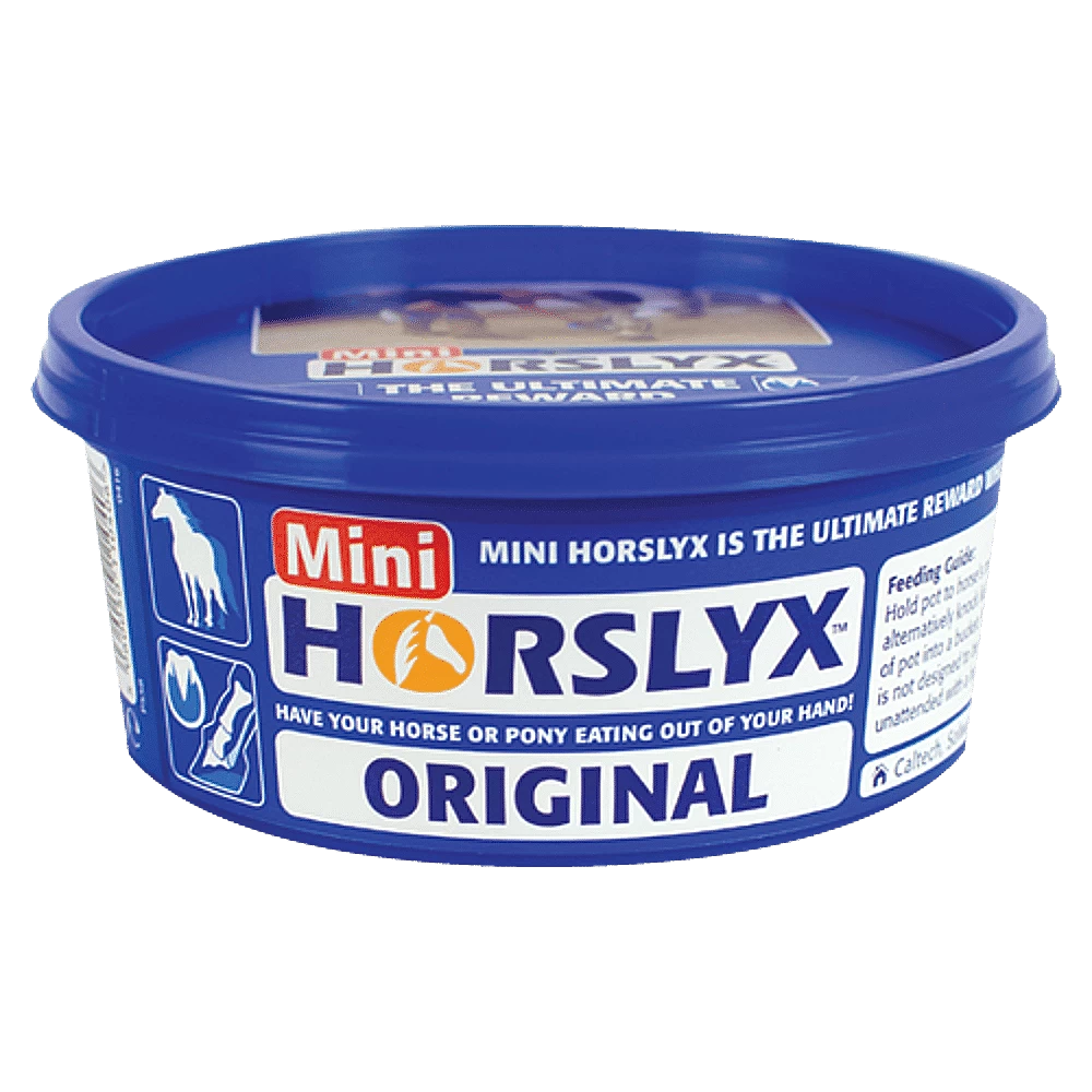 Mini Horslyx is de perfecte keuze voor paardeneigenaars die hun paard of pony willen belonen, afleiden (of omkopen!!) met een voedzaam alternatief voor suikerhoudende traktaties. Mini Horslyx is verkrijgbaar in de formules Original, Mint, Respiratoir, Knoflook en de NIEUWE Mobiliteitsformule en wordt geleverd in handtubs van 650 gram.