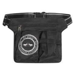 Biedt ruimte voor al het benodigde gereedschap om uw paard te verzorgen of voor te bereiden op wedstrijden zonder uw handen te blokkeren. Gedragen als heuptas. Verstelbare gestreepte riem. Fancy bedrukt logo-artwork op de voorkant.