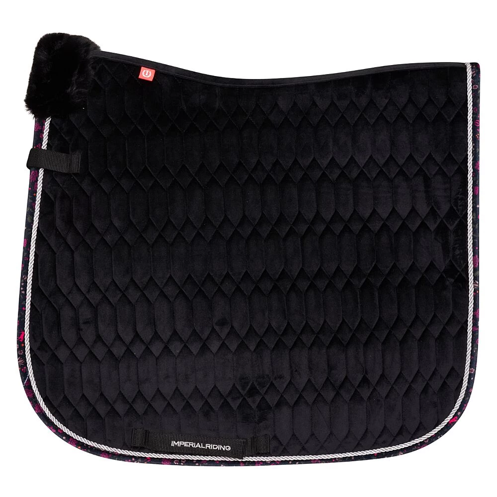 Luxueus zadeldek met de iconische Flower Power-print van de Imperial Riding-collectie in de bies. Het imitatiebontje ter hoogte van de schoft zorgt voor de perfecte pasvorm en voldoende bewegingsruimte voor de schouder en schoft. Daarnaast is de voering extra warmte- en zweetregulerend. Verkrijgbaar als dressuur- of veelzijdigheiddekje en perfect te combineren met andere items uit de wintercollectie van Imperial Riding.