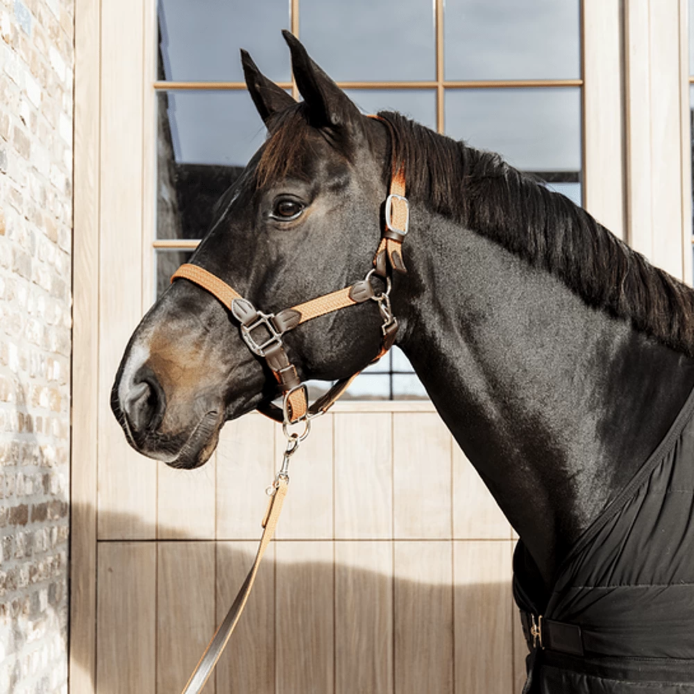 Het Kentucky Nylon Gevlochten Halster is gemaakt van artificieel leder (100% diervriendelijk) en heeft een nylon gevlochten design.