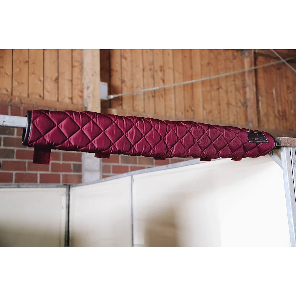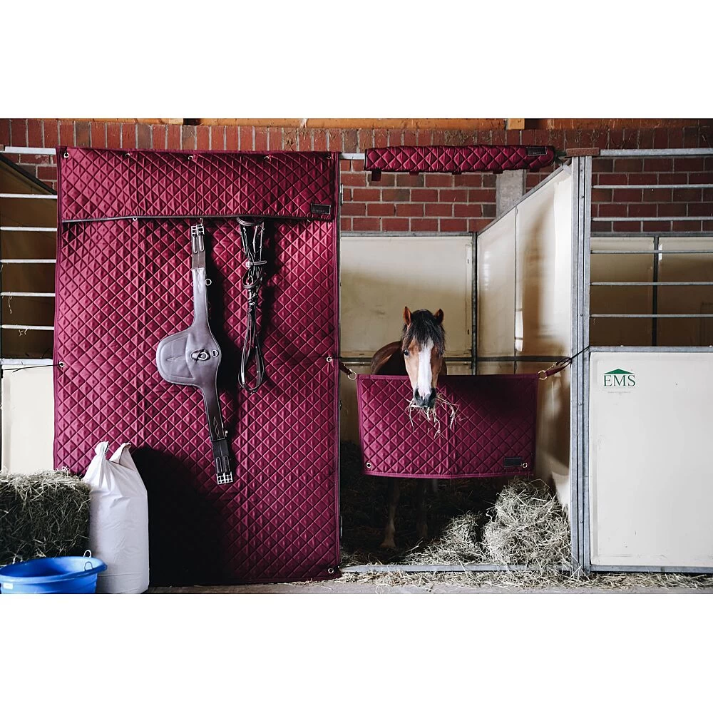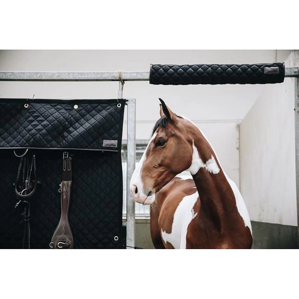 De Kentucky Horsewear hoofdbeschermer is de ideale bescherming voor het hoofd van je paard op stal. Deze hoofdbeschermer wordt bevestigd aan de bovenste buis boven je deur en wordt vastgemaakt met behulp van vijf sterke klittenbandsluitingen. De hoofbeschermer is gemaakt van 600D High Tenacity Polyester en heeft een stijlvolle look dankzij het Diamond quilting patroon, de bruine artificiële lederen bies en het Kentucky logo in artificieel leder. Deze hoofdbeschermer is een perfecte match met ons stalgordijn en onze stalpoort.