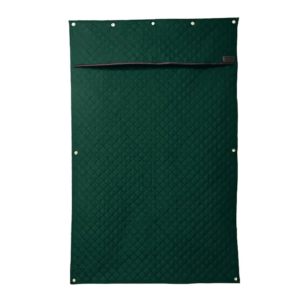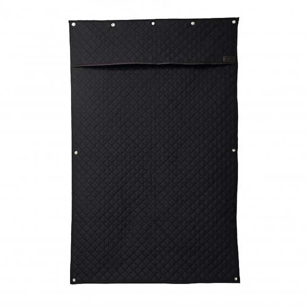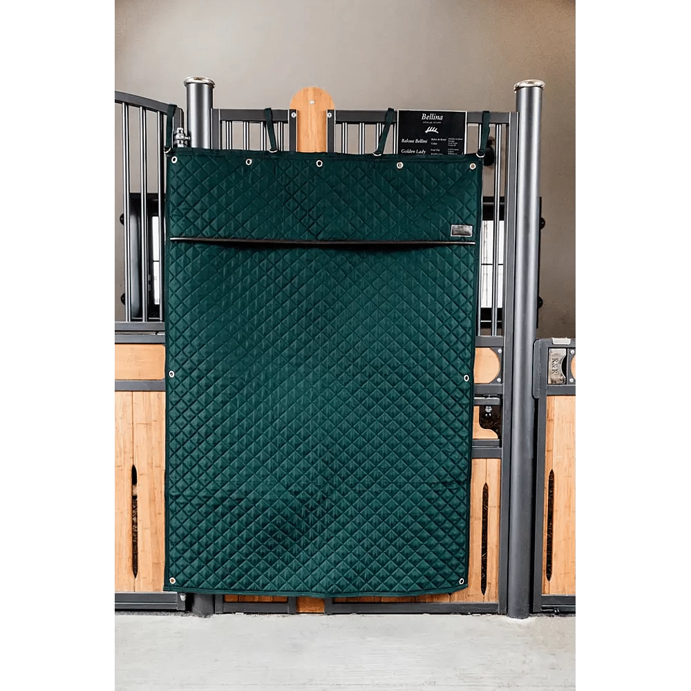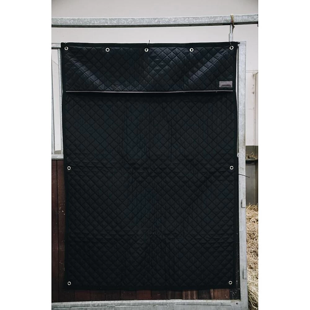 Het Kentucky Stalgordijn biedt je paard de nodige rust op een meerdaagse wedstrijd of in zijn eigen stal.  Dit Stalgordijn heeft vijf goudkleurige, versterkte ringen om het gordijn te bevestigen aan de stal. Onder de bovenflap bevinden zich vijf musketon haken waaraan je benodigdheden kan bevestigen: hoofdstellen, dekenrek, poetshaak,… Deze musketon haken zitten mooi weggestopt achter de stijlvolle flap met Kentucky logo in artificieel leder.  Het Diamond Quilting patroon, het artificieel lederen biesje op de flap en het mooie Kentucky logo geven dit Stalgordijn een stijlvolle look.  Het Stalgordijn is een perfecte match met onze Hoofdbeschermer en Stalpoort.