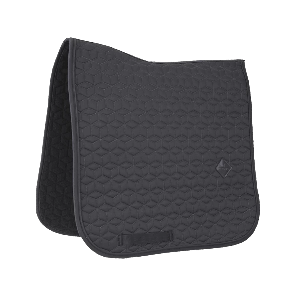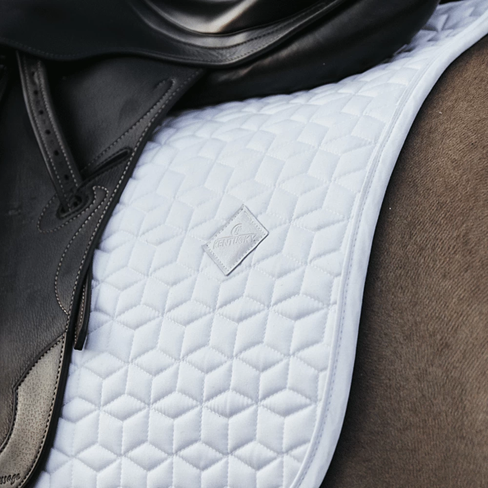De buitenkant van de zadeldoek is gemaakt van een katoenachtig polyester in kubus quilting. Aan de linkerkant van de zadeldoek is een kleine vegan lederen patch met het Kentucky logo, onder het logo is genoeg plek gelaten om iets te borduren. De voering van het dekje is een vocht afvoerende katoen-polyester mix.