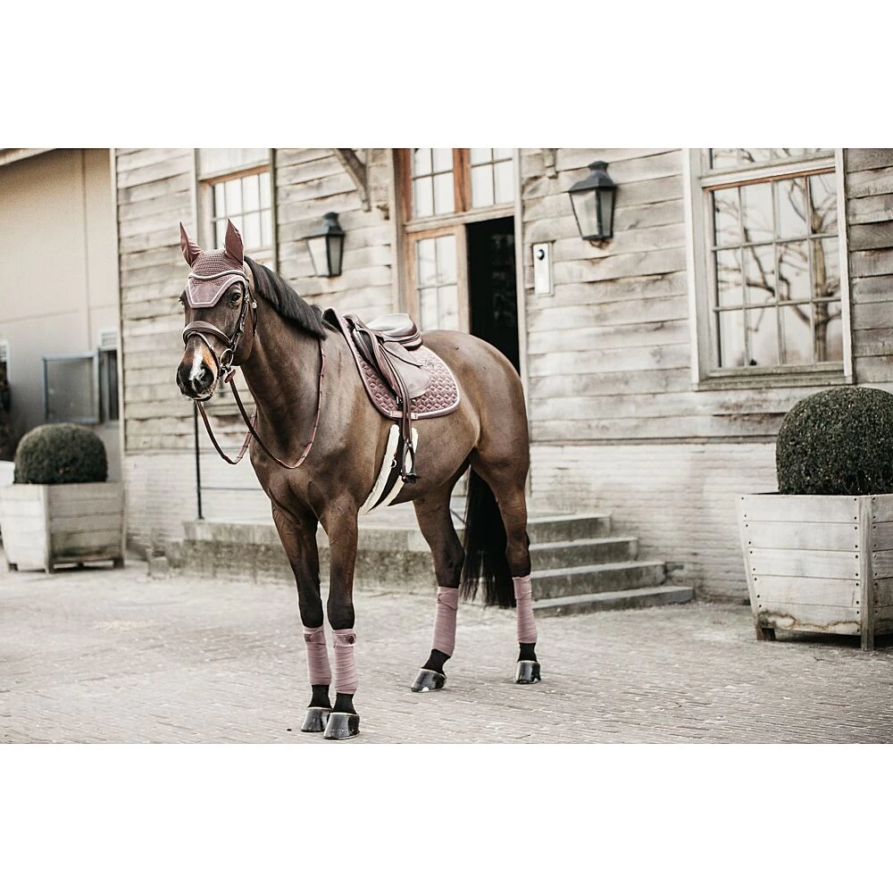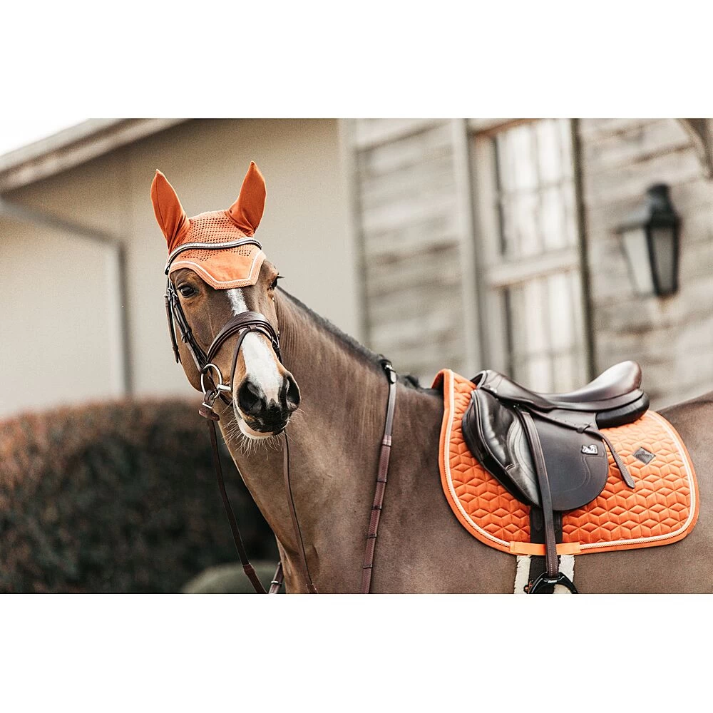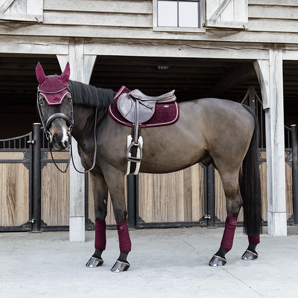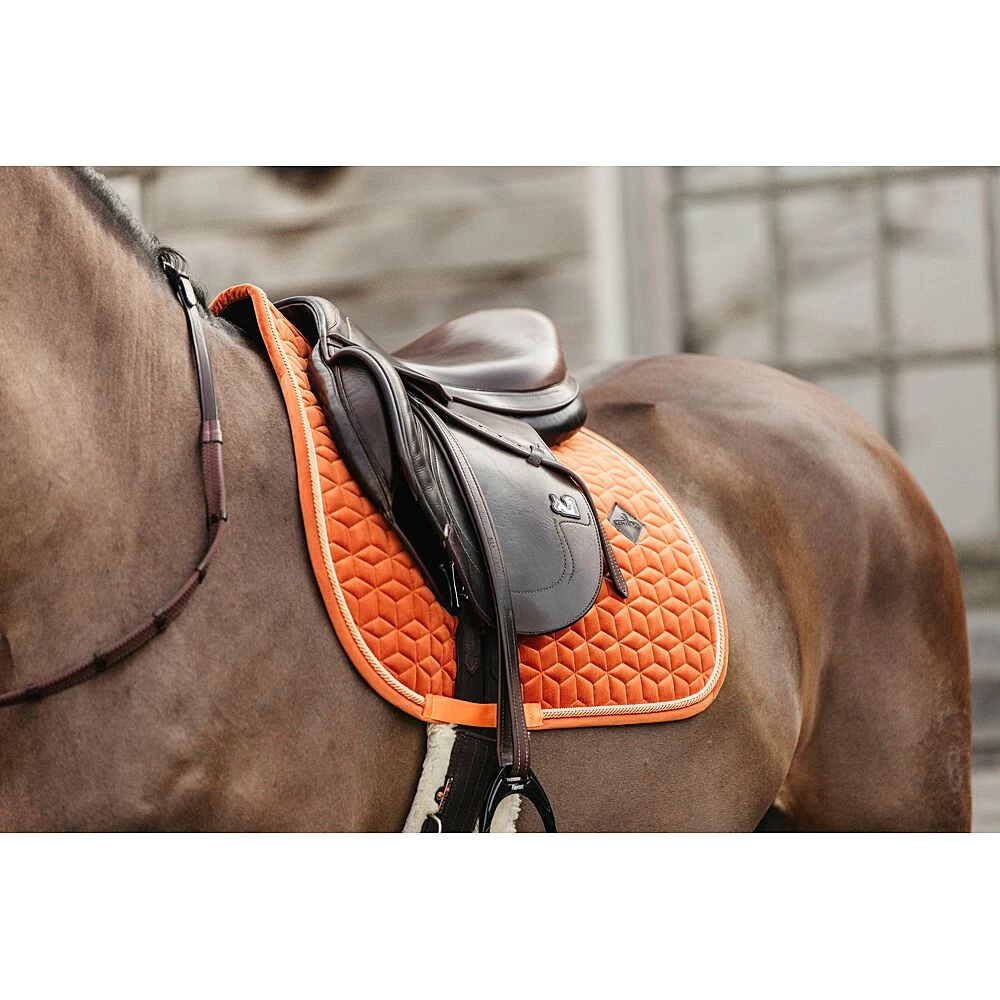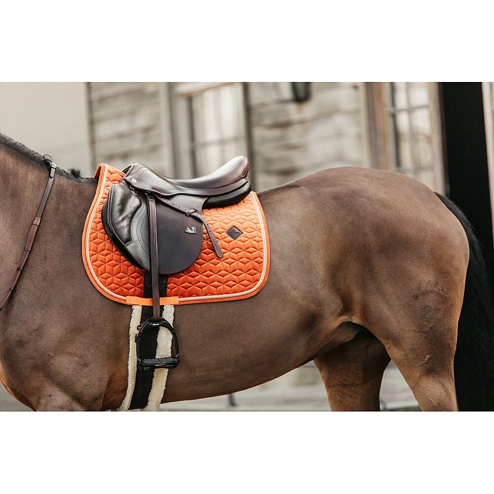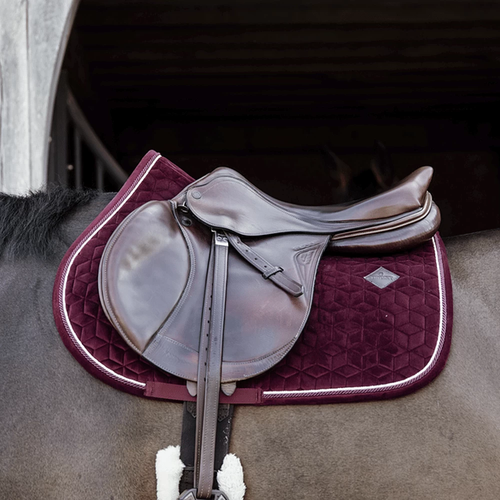 Dit Kentucky zadeldoek Velvet met dubbel gedraaide bies is super stijlvol en elegant. Dit zadeldekje biedt een schok dempende functie aan tussen de rug van het paard en het zadel en voorkomt eventuele wrijving. Het Kentucky logo is centraal geplaatst zodat er nog plaats is voor borduurwerk indien gewenst. Er zijn bovenaan geen bandjes aanwezig om het zadel vast te maken, enkel bandjes voor de singel.