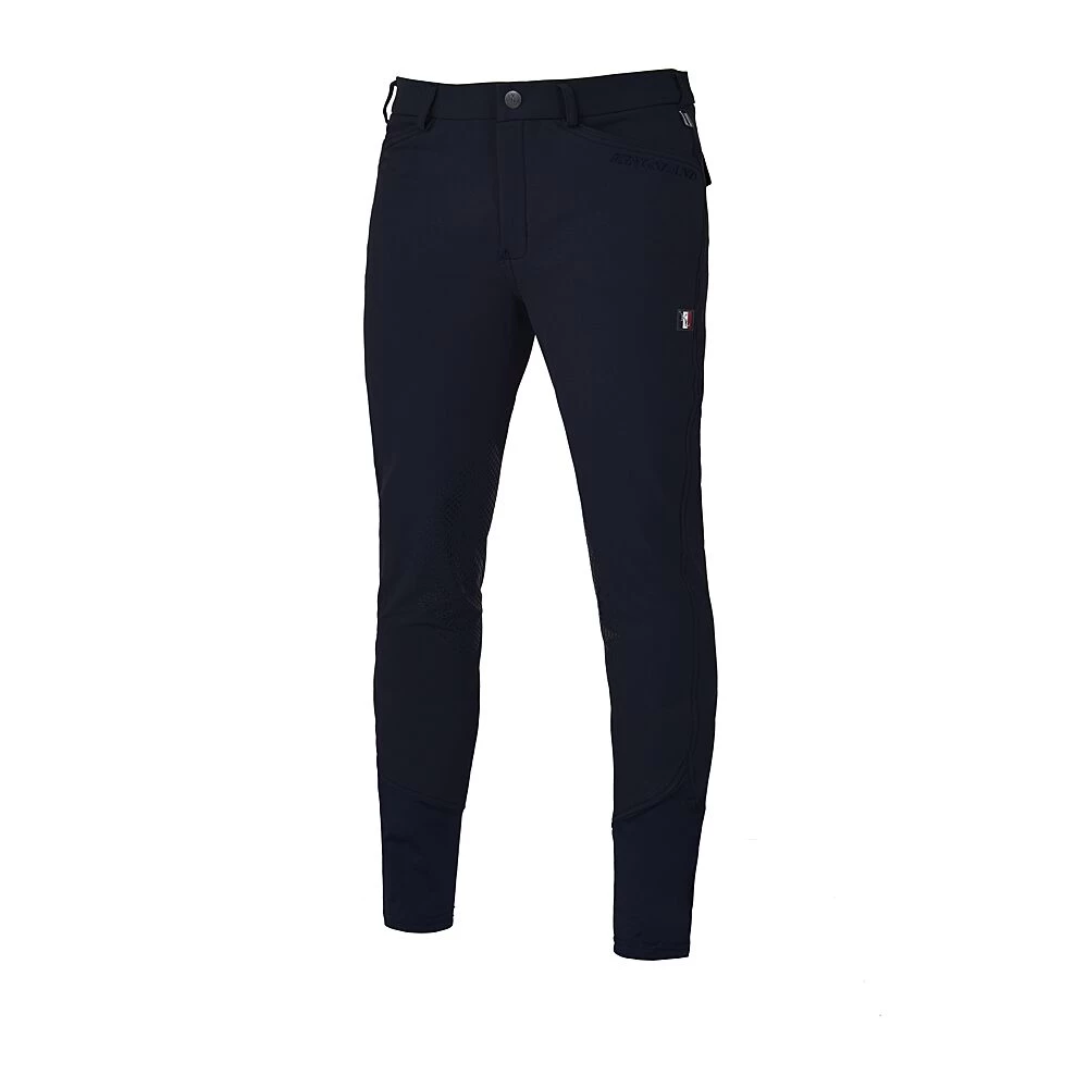 Rijbroek voor mannen met knie-grip. Optimaal comfort met 4-way stretch. Waterafstotend, ademend en stofafstotend. Onderkuit in Lycra voor meer comfort. Borduurwerk onder de voorzak en patch op linker bovenbeen.