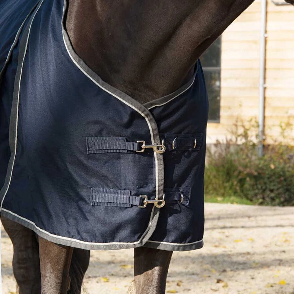 Zomerdeken Pro-Fit, 1200D, buitenzijde in polyester met voering in poly katoen. Hogere loopsplit met elastische inzet aan de schoft, gekruiste singels en bilkoorden.