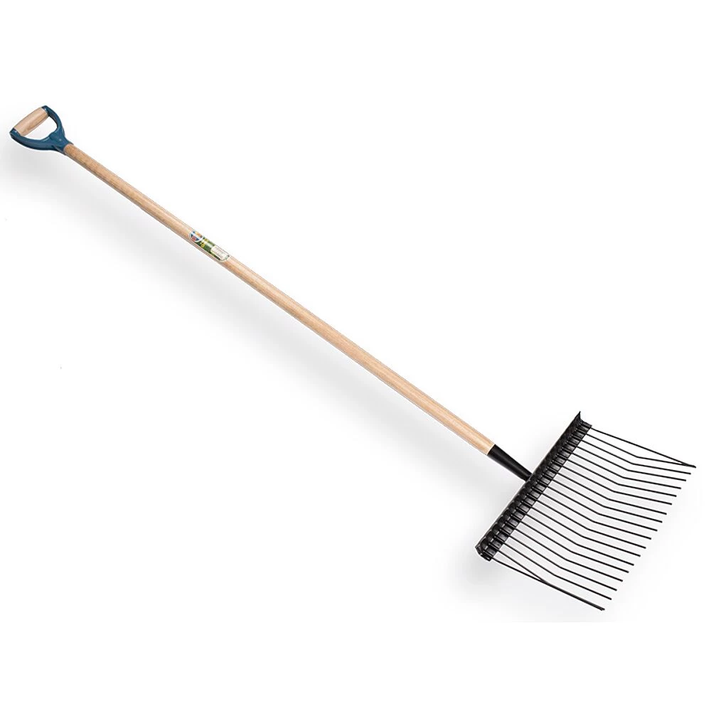 Metalen paardenstalvork compleet met steel en PD-greep, De lengte van de steel inclusief greep is 140cm. Zeer gemakkelijk in gebruik.