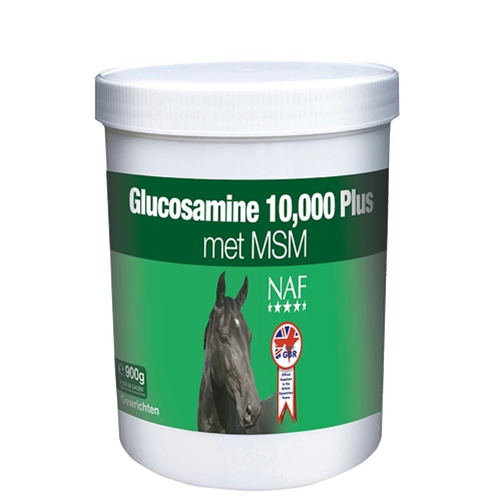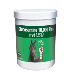 Glucosamine 10.000 Plus met MSM, organisch gebonden zwavel, bevat het juiste niveau van glucosamine sulfaat. Het gehalte is 10.000 mg werkzame stof, met voor onderhoud 5,000 mg. Wie graag de gewrichten van zijn paard ondersteunt, kiest met Glucosamine 10.000 plus met MSM het ideale basisproduct.
