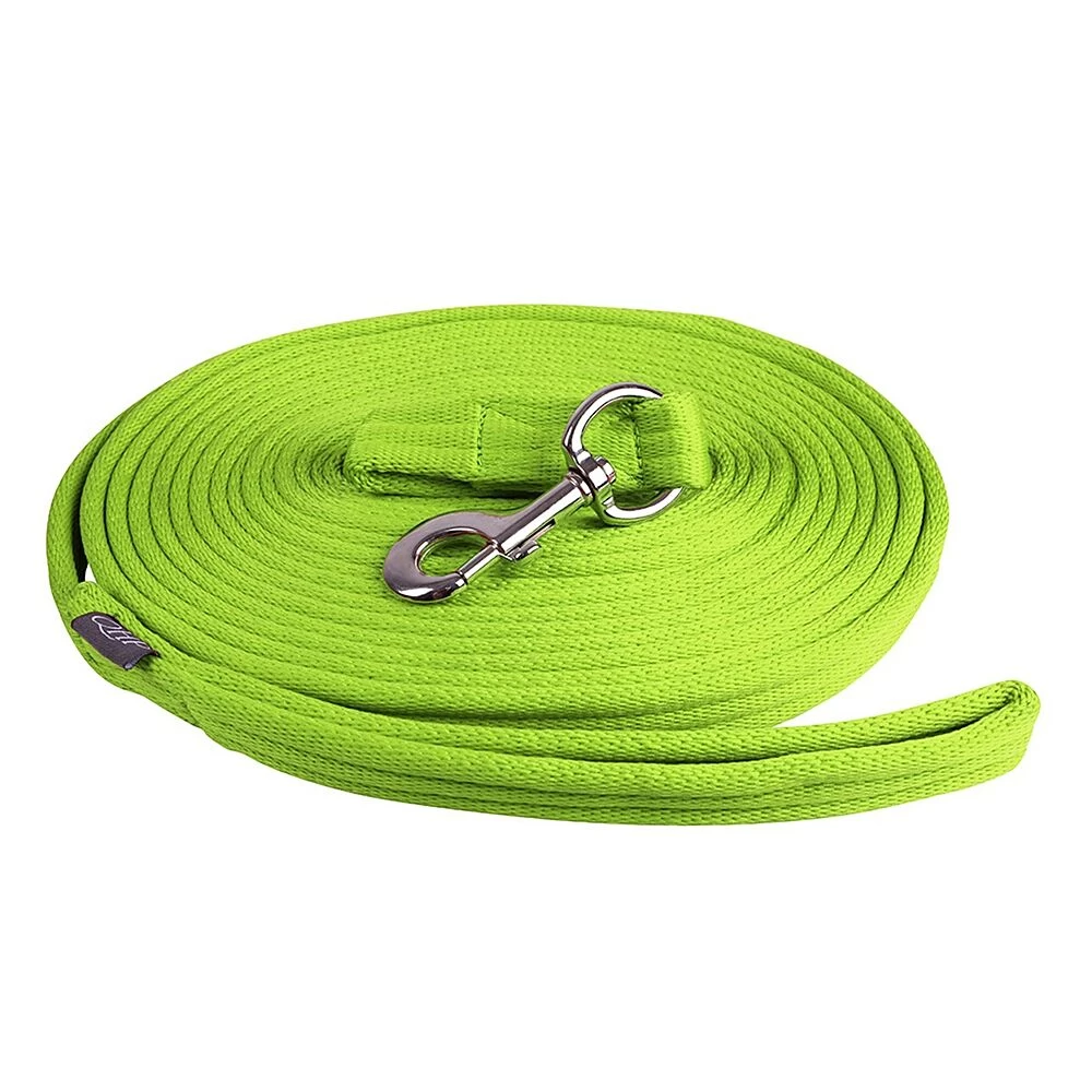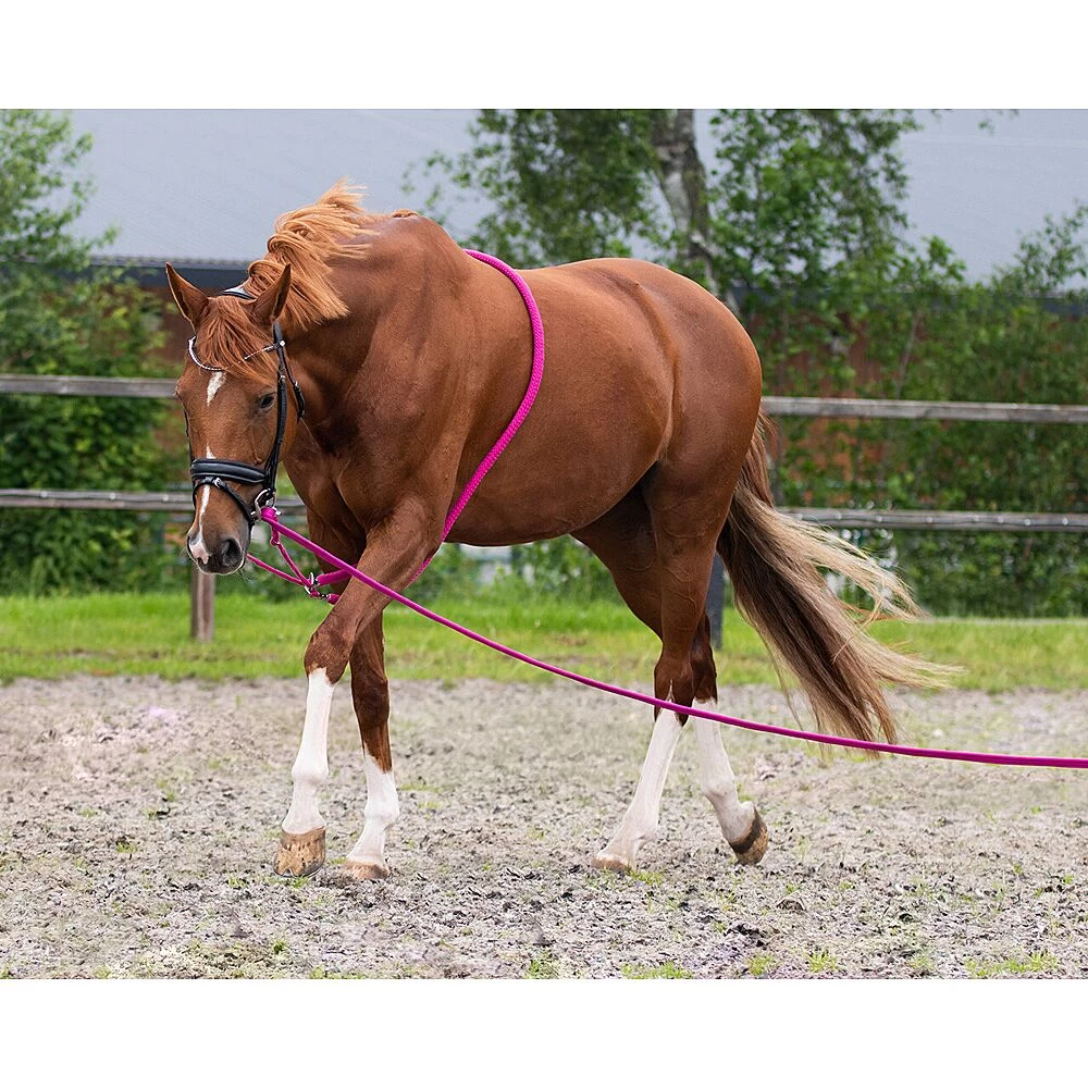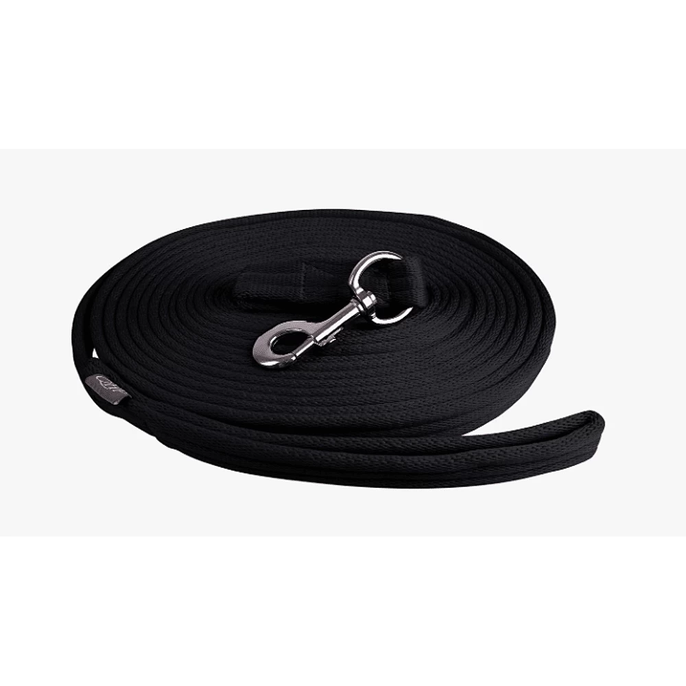Deze extra zachte longeerlijn van 8 meter lang zit verpakt in een handige tas om de lijn in op te bergen en te vervoeren. De longeerlijn is beschikbaar in verschillende kleuren.