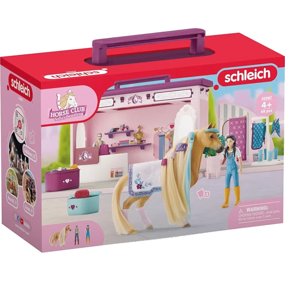 In de pop-up-boetiek van Schleich vind je alles om op de overwinningsfoto van paardrijtoernooien of tekenwedstrijden een goed figuur te slaan met je paard. En wanneer je een keer een buitengewoon kapsel bij je paard wilt uitproberen, is dat heel eenvoudig. Je kunt de manen en staart namelijk snel verwisselen. Zo staat niets een prachtige overwinningsfoto in de weg.