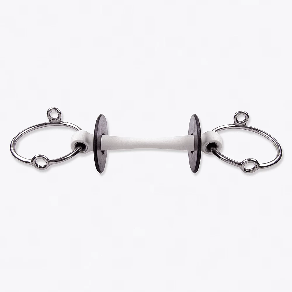 Dit bit bevat een flexibele metalen kern en is dus harder dan de Inno Sense Flexi soft maar is ook geschikt voor paarden met een gevoeilige mond en jonge paarden door het synthetische materiaal.